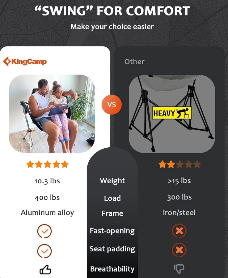 რეგულირებადი პორტატული კემპინგის სკამი, შეგიძლიათ თავისუფლად იჯდეთ ან წაიკითხოთ. შეცვალეთ სამაჯური, შეგიძლიათ იპოვოთ სრულყოფილი უკანა კუთხე. სვინგის ბანაკის სავარძელი საშუალებას გაძლევთ ველურებებში გადაიტანოთ გრძელი თოკებისა და ხეების გარეშე.