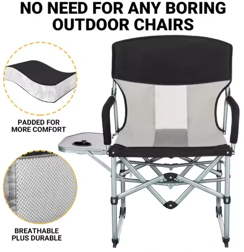 BBQ Camping Picnic სკამი, დასაკეცი კემპინგის სკამი, მძიმე მოვალეობის შემსრულებელი დირექტორების სკამები მოზრდილთა სკამები გვერდითი მაგიდის mesh უკანა კომპაქტური სტილი გარედან
