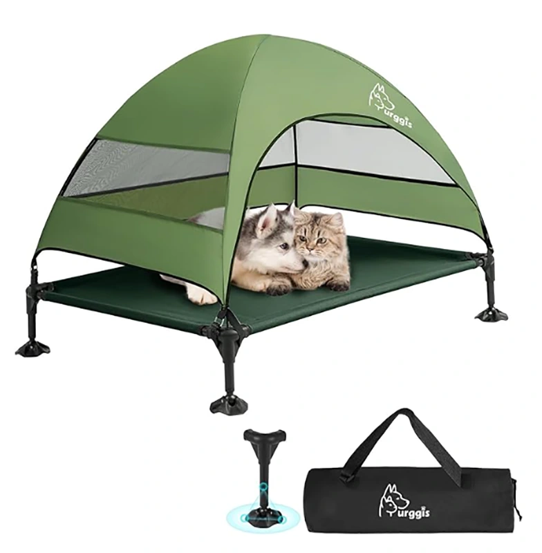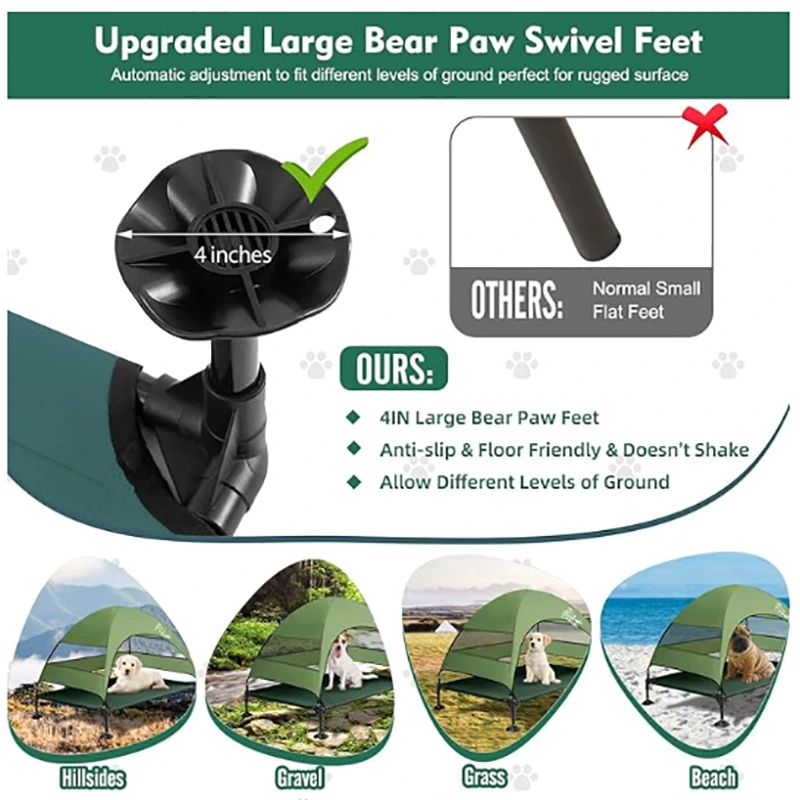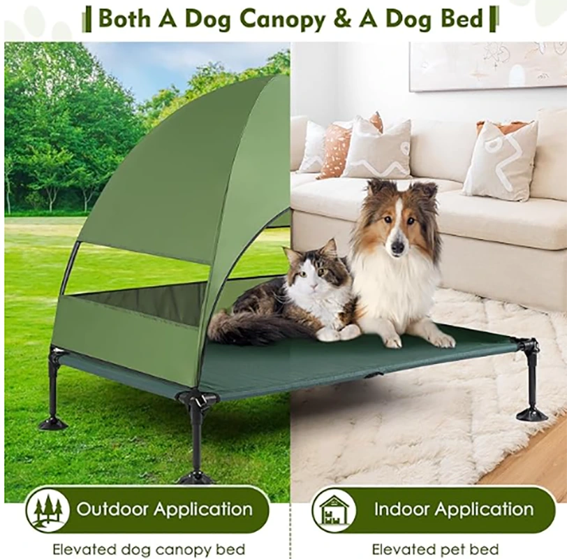 კატის ძაღლის საწოლი ტილოთი, განახლებული ამაღლებული ძაღლის საწოლი ტილოთი, პორტატული ამაღლებული გარე ძაღლის საწოლი სტაბილური მოცურების საწინააღმდეგო ფეხებით, ფართო ჩრდილის შინაური ცხოველის საწოლის საწოლი, ამაღლებული ძაღლის საწოლი დიდი ძაღლებისთვის კემპინგისთვის, შიდა და გარე გამოყენებისთვის.