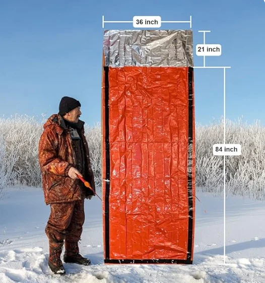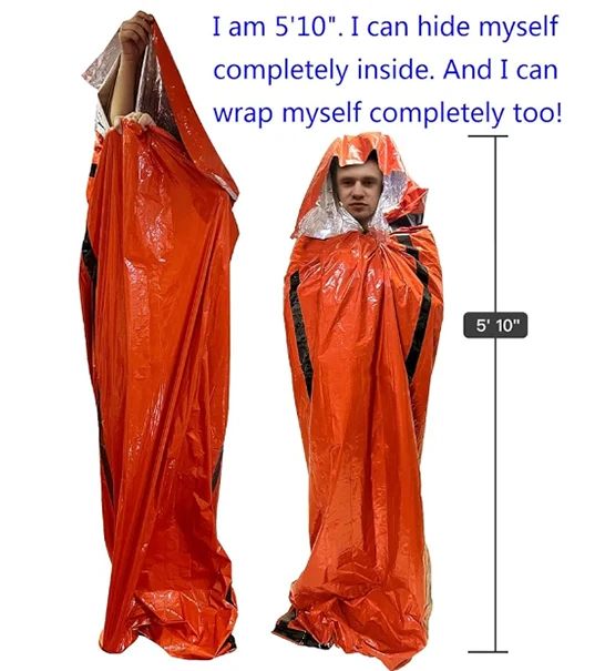 გადაუდებელი გადარჩენის საძილე ტომარამ შეიძლება გაზარდოს თქვენი გადარჩენის შანსი ყველა ამინდში, ყველა სეზონზე და ყველა გარემოებაში. იგი დამზადებულია ნასას მიერ შექმნილი მილარული მასალისაგან, რომელიც შექმნილია NASA– ს მიერ სივრცის შესამოწმებლად. იგი ინარჩუნებს / ასახავს სხეულის სითბოს 90% -ს. ეს არის მეორადი, წყალგაუმტარი და windproof.