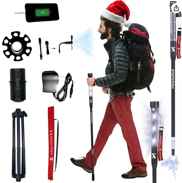 LED მსუბუქი ტრეკინგის ბოძზე. პრემიუმის ხარისხის მრავალჯერადი ტრეკინგის ბოძზე ლაშქრობა, გადარჩენის ჯოხი და ჩამონგრეული თავდაცვის ჯოხი ნებისმიერი საშიში გარე საქმიანობისთვის.