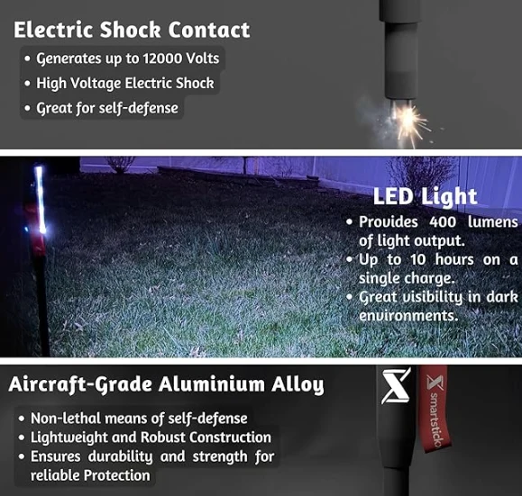 LED– ზე ორი რეჟიმი: ნათელი თეთრი შუქი, რომელიც შესანიშნავია კემპინგისთვის და წითელი/ლურჯი ფლეშ საგანგებო სიტუაციებისთვის, რაც მას ეფექტური ინსტრუმენტი გახდება ღამის ჯოხების თავდაცვისთვის.