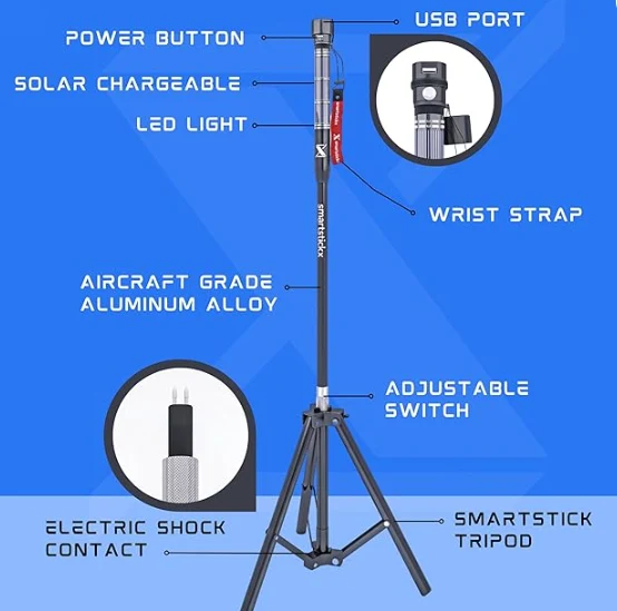 ტაქტიკური ლაშქრობის ჯოხი მარტივად შეგიძლიათ გამოიყენოთ თქვენი სმარტფონი ან ნებისმიერი სხვა USB მოწყობილობა მოსახერხებელი USB პორტის გამოყენებით. არასოდეს ინერვიულოთ ელექტროენერგიის ბანკის ტარებაზე, როდესაც გადარჩენის საფეხმავლო ჯოხი გაქვთ.