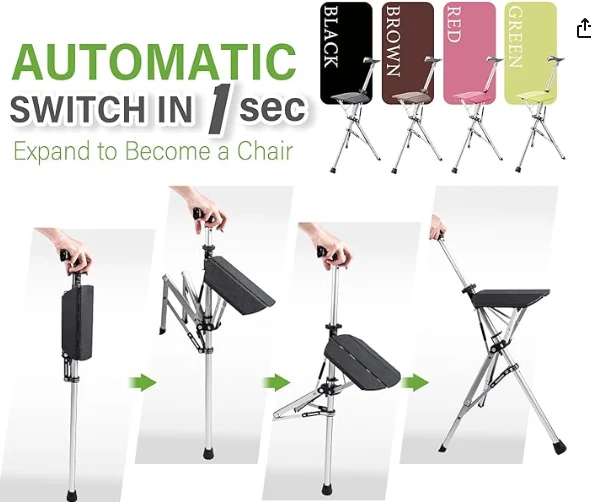 მოხუცი მამაკაცები Alpenstock Trekking ლერწამი, დასვენება და ლაშქრობის ჯოხი მხარდაჭერისთვის. ეს დიზაინი, რომელიც მყისიერად გადააქცევს საფეხმავლო ჯოხს სავარძელში სავარძელში, სთავაზობს დასვენებას დაღლილი ფეხებისა და მუხლებზე, მომენტში.