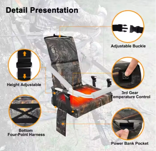 გარე თევზაობის გამაცხელებელი სავარძელი, გთავაზობთ როგორც ძალას, ასევე კომფორტს და შექმნილია იმისთვის, რომ გაუძლოს უხეშ გარე პირობებს, ხოლო ძლიერი ჯდომის მხარდაჭერას უზრუნველყოფს, კომფორტული ნადირობა საათობით