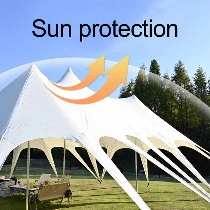 Sunshade წყალგაუმტარი დიდი გარე კარვები, თოვლის ქვედაკაბა, რომელიც შესაფერისია ყოველი სეზონისთვის, გაზაფხულზე, ზაფხულში, შემოდგომაზე, თუნდაც ცივ ზამთრის დღეს, გთავაზობთ უფრო თბილ კემპინგს, რომელიც მოიცავს მთამსვლელ მოგზაურობას. აქტივობები, კემპინგი, ფესტივალები, პიკნიკი, პლაჟები, თევზაობა, მთის ასვლა, სპორტული თამაშები და ა.შ. მარტივი ინსტალაცია და ტარება, ძალიან სასარგებლოა სხვადასხვა სცენარში. ის ასევე შეიძლება მოსახერხებელი იყოს კატასტროფის შემთხვევაში.