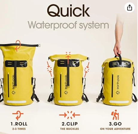 წყალგაუმტარი მშრალი ზურგჩანთა Duffel Bag, 100% წყალგაუმტარი, რომ თქვენი სიჩქარე დარჩეს მთლიანად მშრალი მოგზაურობის, ქეიკინგის, ველოსიპედების, მოგზაურობის, კემპინგისა და თევზაობის დროს