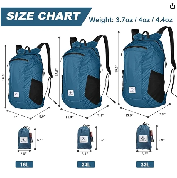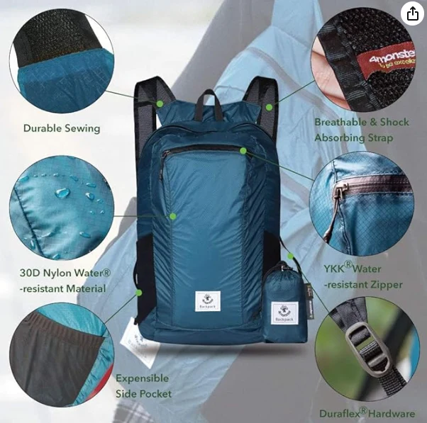 წყალგაუმტარი მსუბუქი საფეხმავლო ზურგჩანთა, დასაკეცი ზურგჩანთა უზრუნველყოფს საკმარის ადგილს გარე მოგზაურობისთვის, კემპინგისთვის, ლაშქრობისთვის, დღის მოგზაურობისთვის და საყიდლებზე. მოყვება ძირითადი zipper ჯიბით, წინა zipper ჯიბით და ორი mesh გვერდითი ჯიბე. 30 დღე არ უპრობლემოდ ანაზღაურება / უფასო გაცვლა, 12 თვის გარანტია.